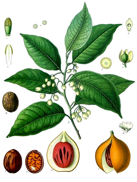 Muskatnuss wird hauptsächlich als Gewürz, aber auch als Rauschmittel verwendet. In der Volksmedizin gilt sie als Aphrodisiakum und als Hypnotikum.