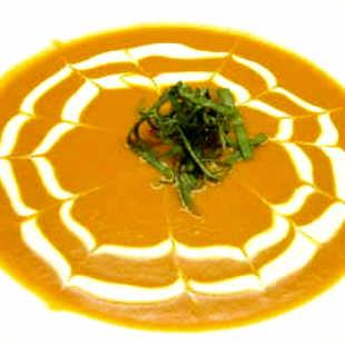 3. Sahne mit etwas Pfeffer und Gin verrühren und in die Suppe geben - vielleicht etwas zur Deko zurückbehalten, um wie auf meinem Bild anzurichten (das ist dann vielleicht nicht unbedingt canarisch :-)).
